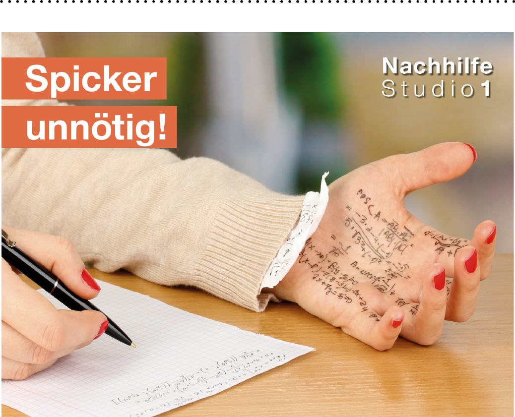 Spicker sind verlockend – aber gefährlich! Lieber vor der Klassenarbeit ins Nachhilfe Studio 1 kommen und alles klären, was du noch nicht verstanden hast. So rockst du die Prüfung ohne Risiko!